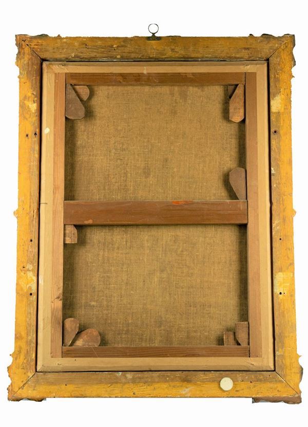 oil painting on canvas of excellent pictorial execution in gilded and carved wooden frame. Measure cm. 64 x 47.