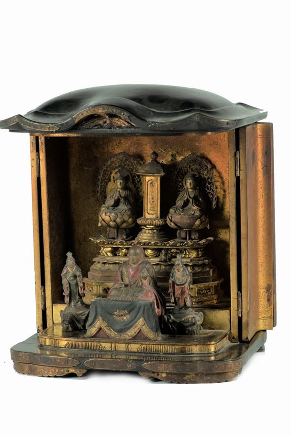 inside polychrome statuettes "Buddha and Divinity". & nbsp; Measure cm. 24 x 19 x 26 h.