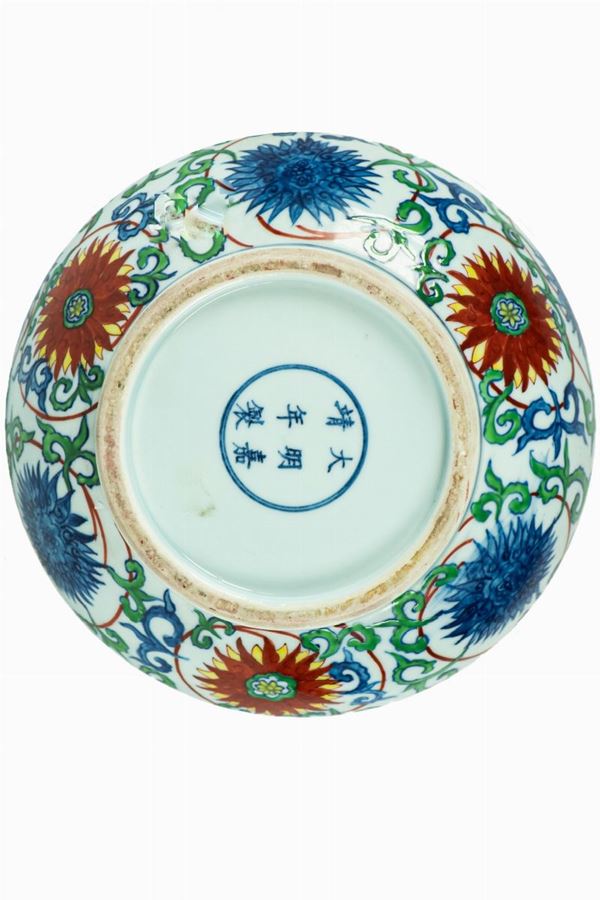with polychrome decorations with oriental flower motifs on a white background. Height cm. 34.