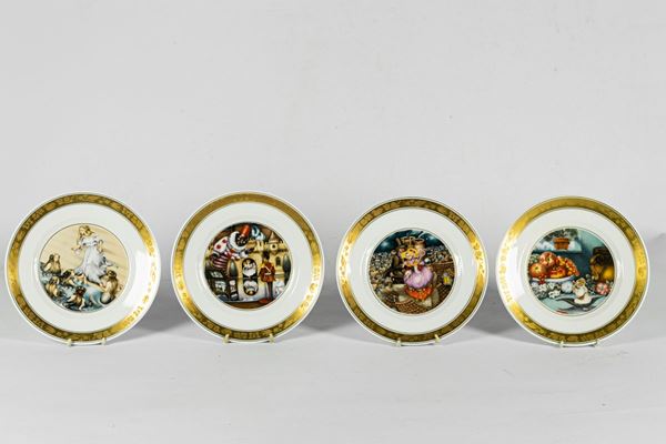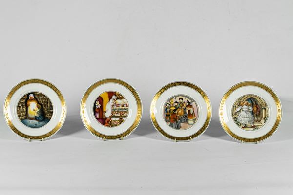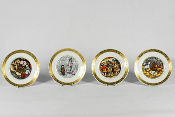 in the center multicolored medallions depicting "The characters of Hans Christian Andersen's fairy tales", edges in pure gold. Diameter cm. 19 each.