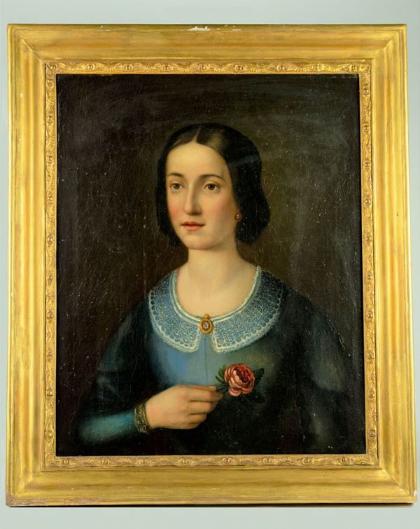 oil painting on canvas in gilded frame. Measure cm. 62 x 50.