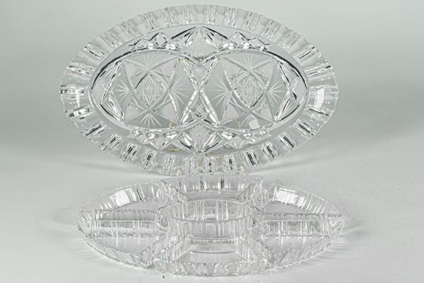 Oval hors d'oeuvre dish in worked Bohemian crystal