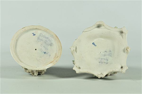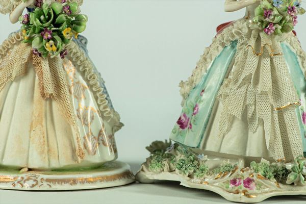 Pair of "Damine" figurines in Capodimonte polychrome porcelain