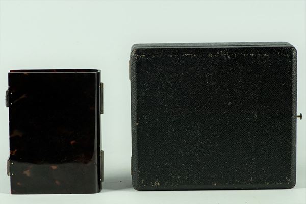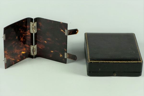 with silver flower applications, original case attached. Measure cm. 9 x 12 x 2.5 h.