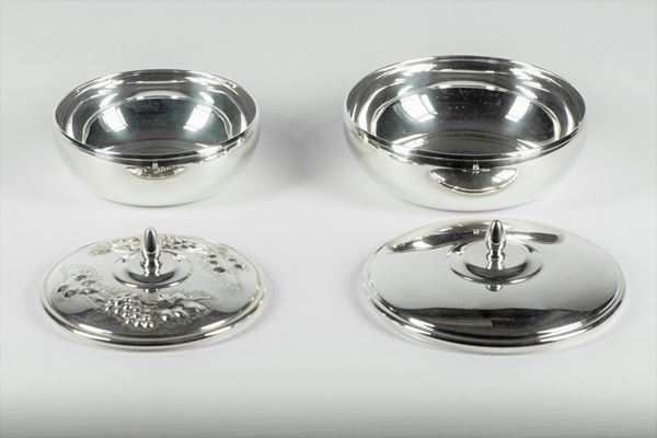 one smooth and one embossed with bunches of grapes. Weight gr. 650. Maximum size cm. 18 x 12 h.