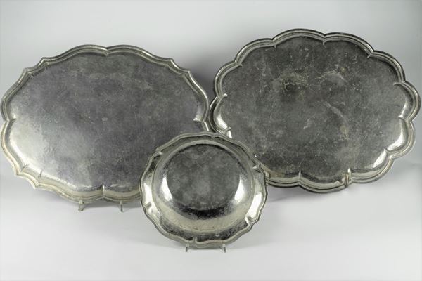 of two large curved oval trays and a round fruit bowl marked Filippo Perego - Saluzzo. Tot. 3 pcs. Maximum size cm. 56 x 45 h.