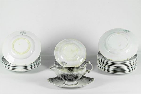 with floral motifs decorations, consisting of: 6 bowls, 12 flat plates, 4 small plates and 1 gravy boat. Tot. 23 pcs.