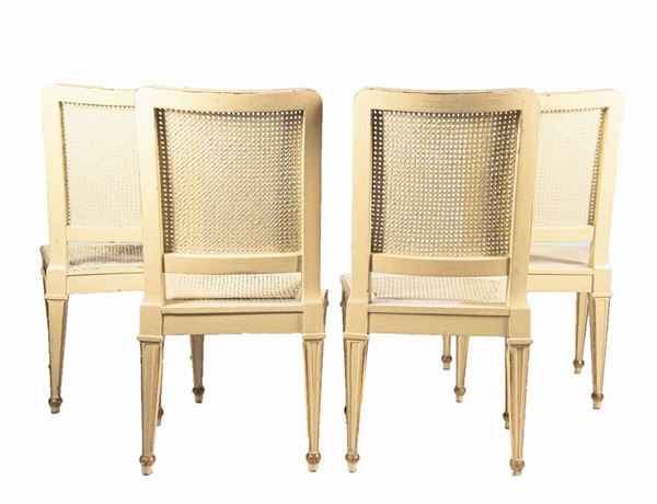 in white lacquered wood with golden profiles. Measure cm. 52 x 52 x 92 h.
