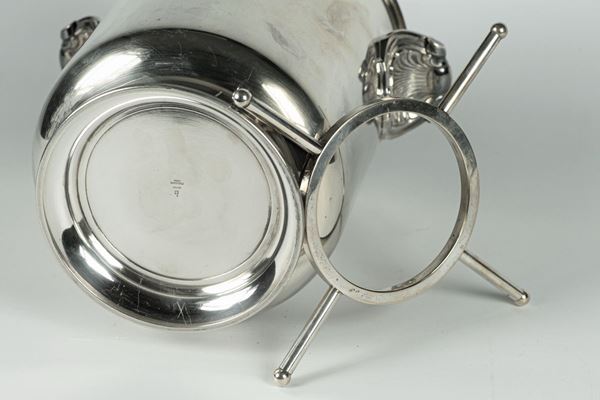 in silver metal, with chiseled and embossed handles with shell motifs. Measure cm. 26 x 23 h.