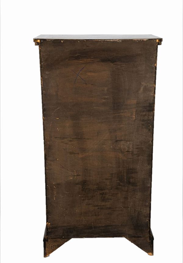arched shape with thread motifs inlays, six pullers. Measure cm. 60.5 x 40 x 115.5 h.