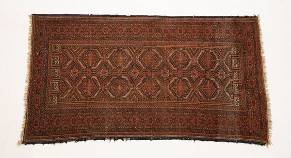 Persian carpet with red background with geometric motifs