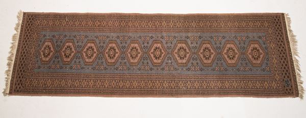 with geometric design on a light blue background. Measure cm. 246 x 77.