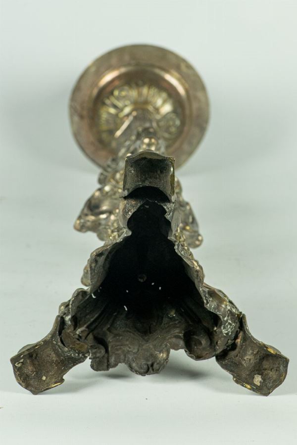 Torch in chiseled and embossed copper with Louis XIV motifs