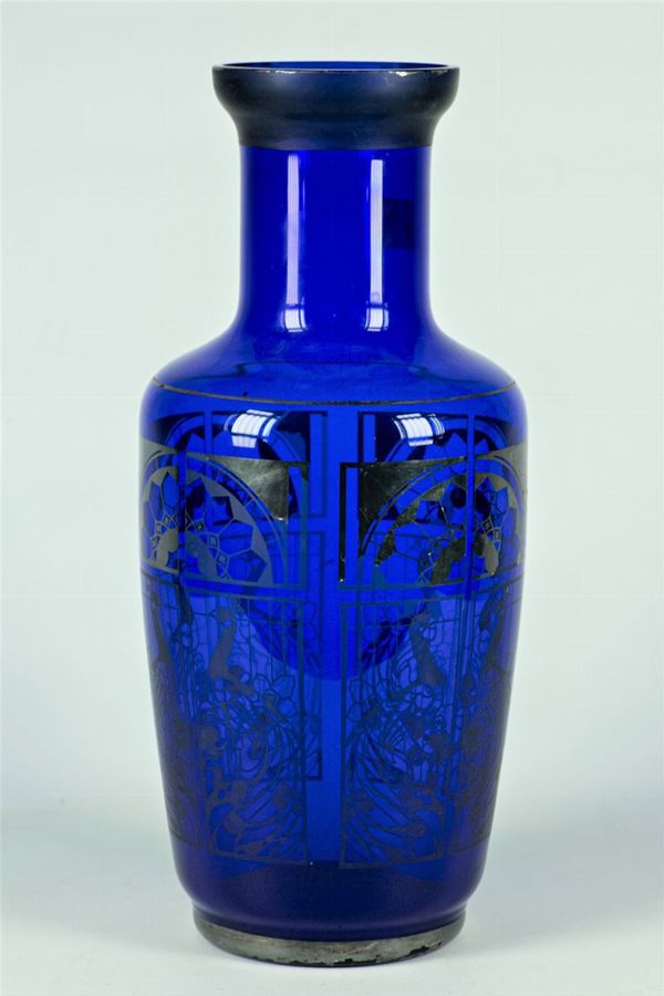 with silver applications (with some shortcomings) with peacock motifs. Measure cm. 19 x 41 h.