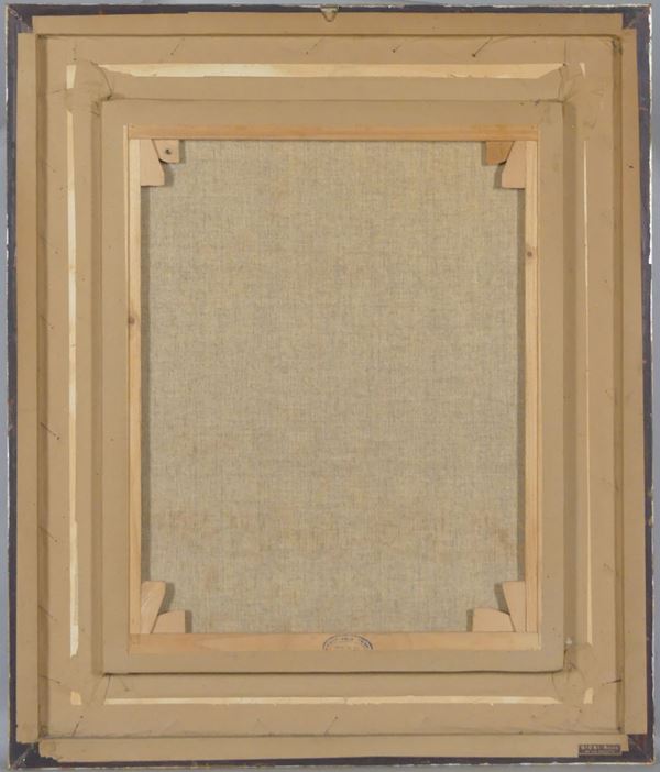 bright oil painting on canvas in frame and passepartout. cm. 53 x 42.