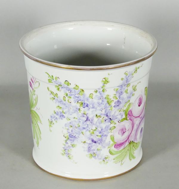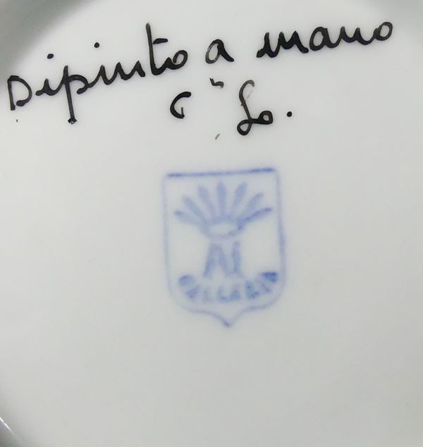 with polychrome decorations with flower motifs on a white background. Diameter cm. 25.5 x 24 h.