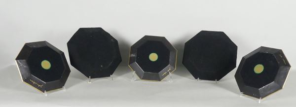 octagonal in shape, two of which are larger, by the New York Designer John Derian, made with the technique of decoupage under glass with scenes of butterflies, birds and interiors. Maximum size cm. 25 x 25.