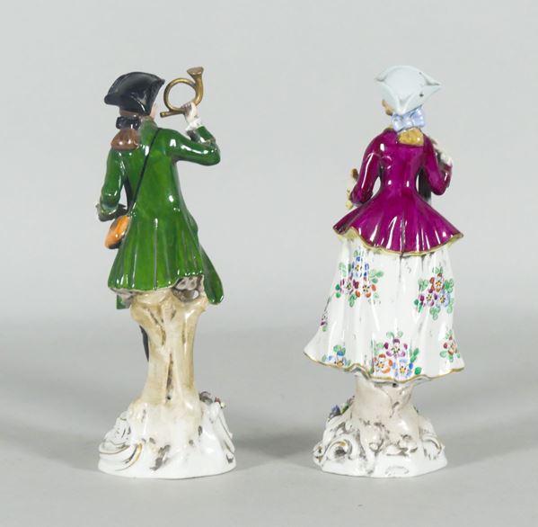 Pair of "Hunter and huntress" figurines in Capodimonte porcelain