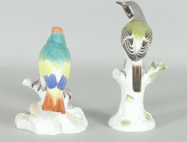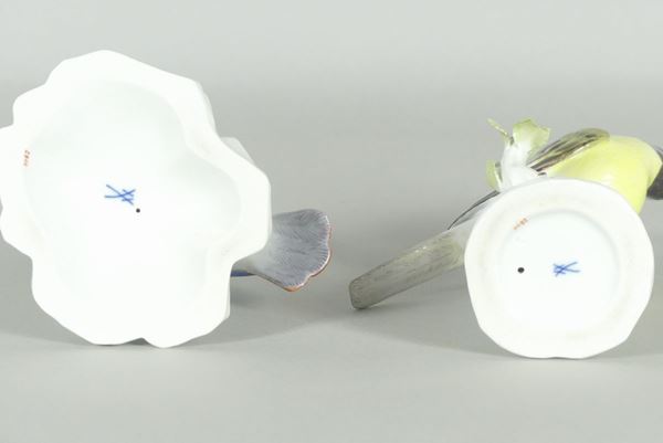 Two small sculptures "parrot and bird" in Meissen porcelain