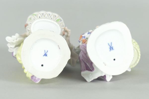 Two small sculptures "Flower seller and fish seller" in Meissen porcelain