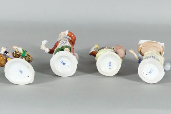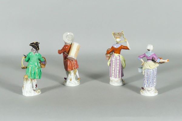 Four small sculptures "Peddlers" in Meissen porcelain