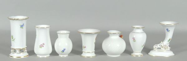 with polychrome decorations with floral motifs on a white background. Various shapes, sizes and decorations. Maximum height cm. 14.