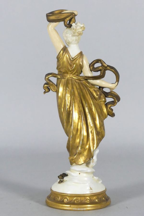 "Vestal" figurine in white and gold Capodimonte porcelain