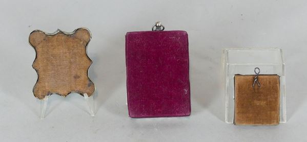 one in painted enamel "Madonna with Saints" and two Russian with silver braces "Christ" and "Christ with Saints". Maximum size cm. 6 x 9 h.