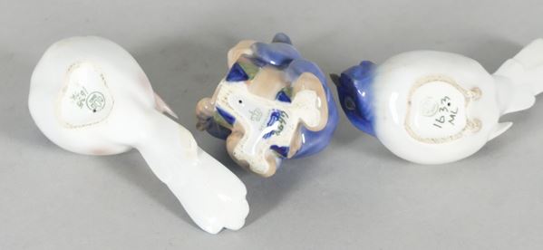 Three "Child and two little birds" figurines in Royal Copenhagen porcelain.