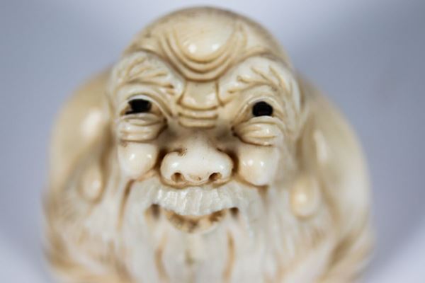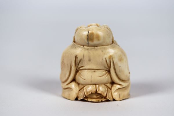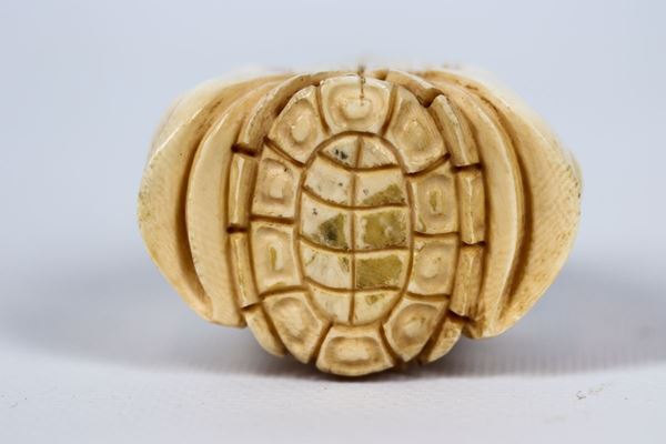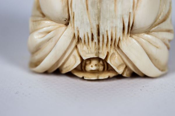 Ancient small Chinese ivory sculpture "Santone with turtle"