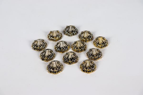 Lot of Twelve Silver-plated and gilded metal salt pans in the shape of shells
