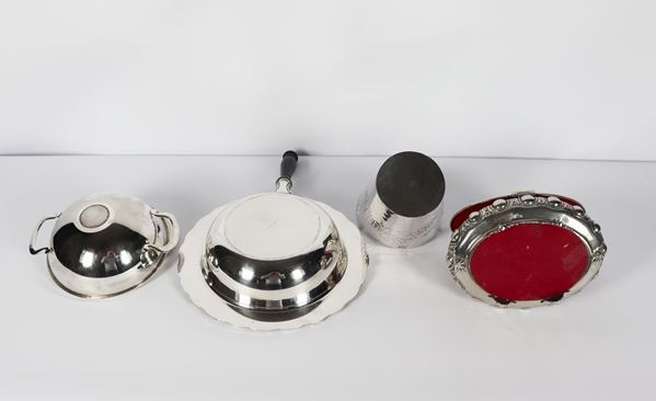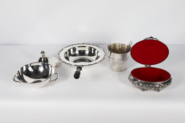 of a vegetable dish with ebonized wood handle, a small tureen, an ice bucket and a jewelery box. Maximum height cm. 16. & nbsp;