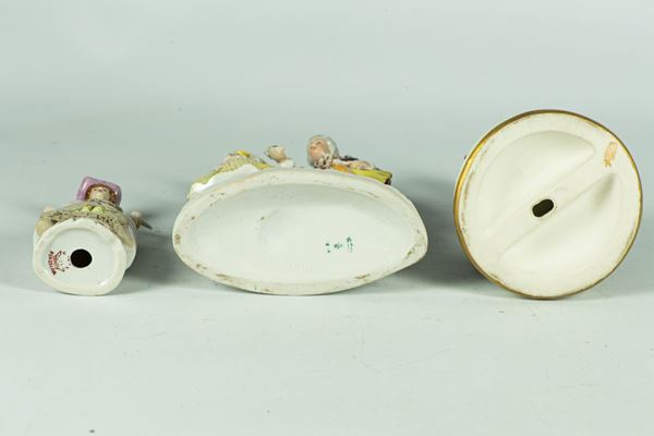of a group of "Gallant scene", a "Lady" figurine and a "Reading child" figurine. Defects. & Nbsp;
