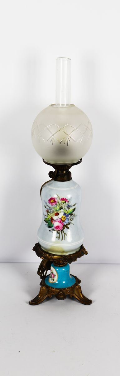 with decorations with motifs of bunches of flowers. Reduction to electric light. Height cm. 58.