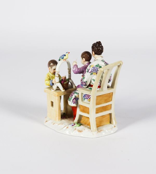 Small group in polychrome enameled Meissen porcelain "Chinese girl with children"