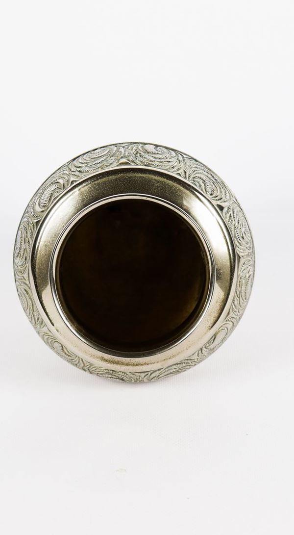 with chiseled band with floral interweaving motifs. Height cm. 18.