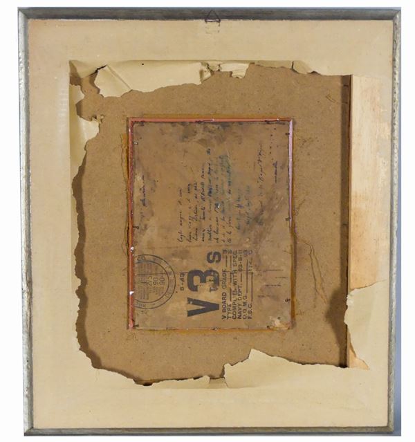 small oil painting on canvas applied to cardboard with dedication on the back, silver wood frame and passepartout. Measure cm. 26 x 20.