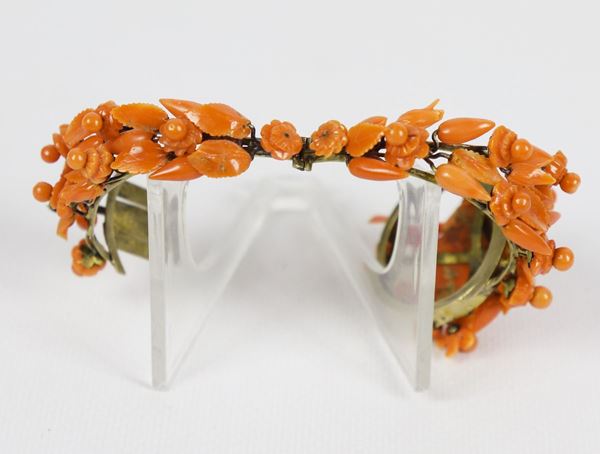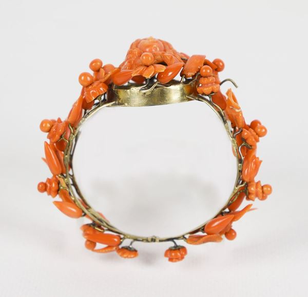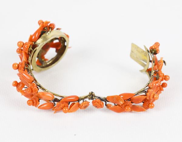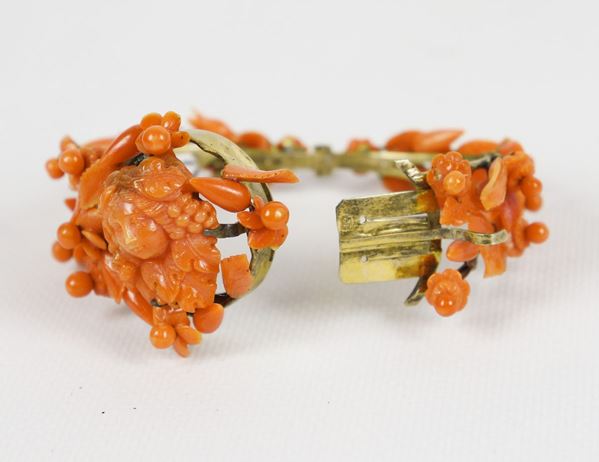 Antique Neapolitan Ferdinand II period bracelet in coral and gilded silver