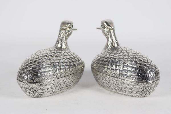 Pair of duck-shaped boxes in 925 Sterling silver 1080 gr