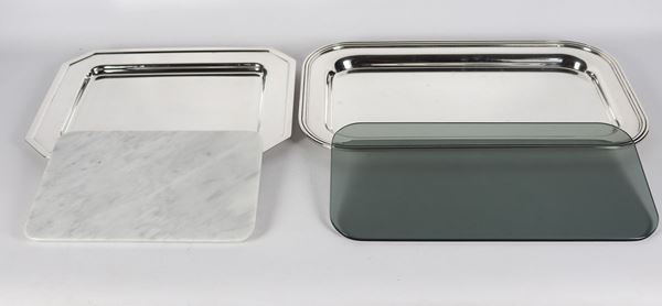 rectangular in shape, one with a marble bottom and one with a smoked glass bottom, maximum size 48 x 28 cm.
