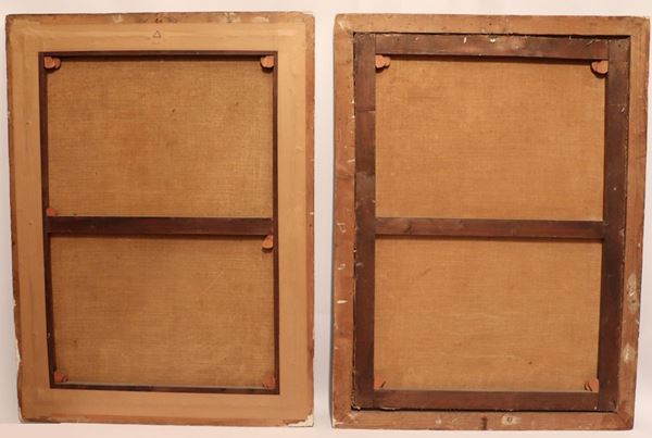 in antique frames in green and gilded lacquered wood, 96 x 69 cm each.