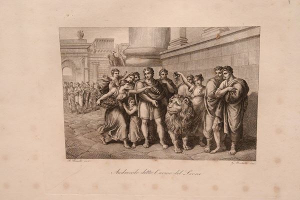 Lot of nineteen small ancient engravings "Scenes from Ancient Rome"