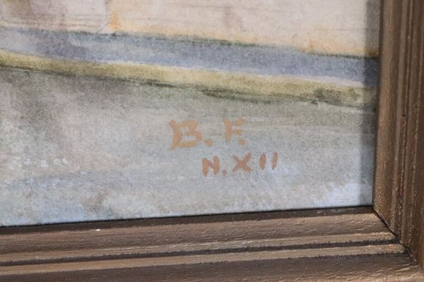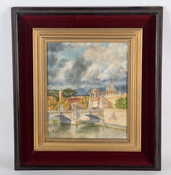 "View of Ponte Sant'Angelo with the Tiber" watercolor on paper