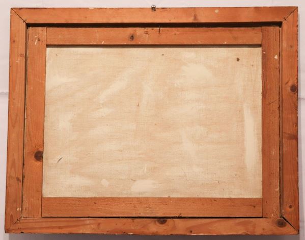 in gilded wood frames. The canvases have defects with slight color losses, 60 x 80 cm each.