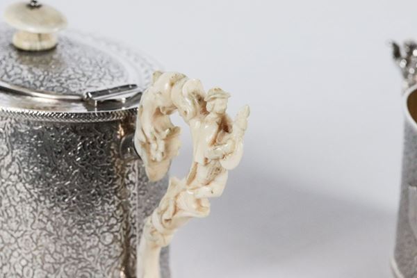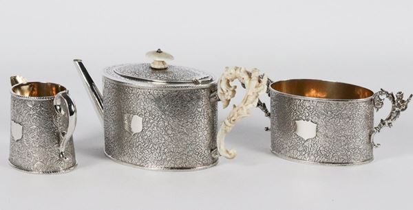 Tea set in silver and ivory Victorian period Silversmith I. S. G. (3 pcs) 465 gr