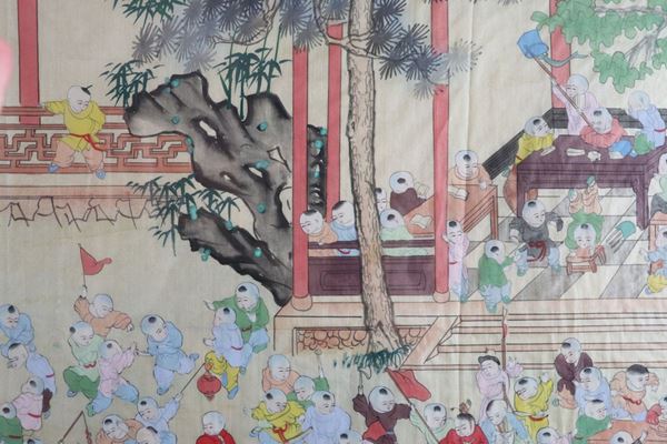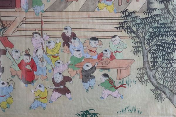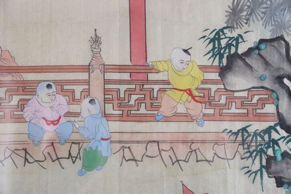 Ancient Chinese panel painted on silk "Feast of children"