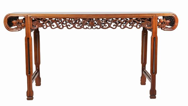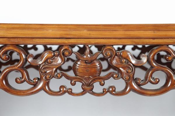 rectangular shape with intertwined and perforated carvings, four legs, cm 164 x 52 x 84 h.