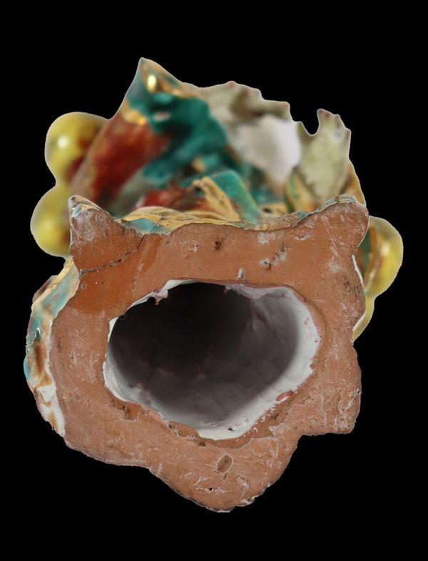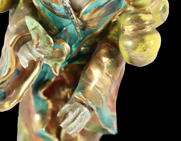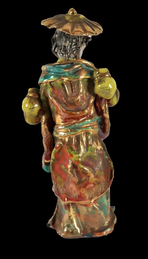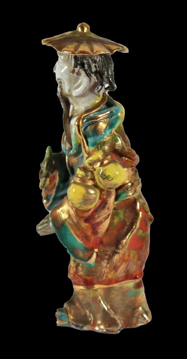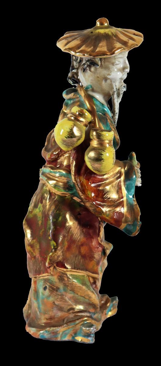 Chinese figurine "Old man with water bottles" in enamelled and polychrome stoneware