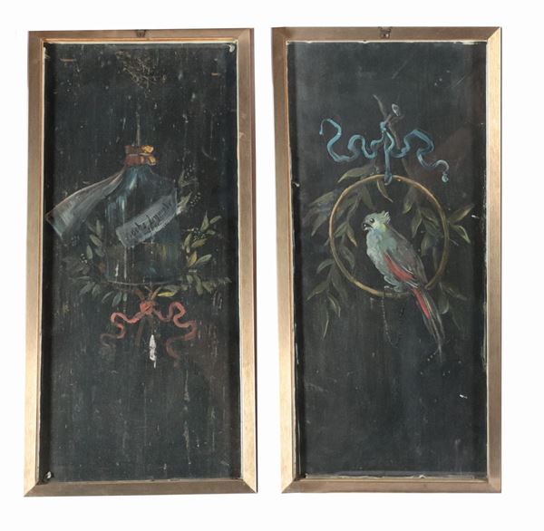"Dante and Beatrice". Signed. Pair of paintings