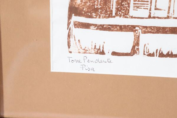 Drawing on paper "The Tower of Pisa". Signed.